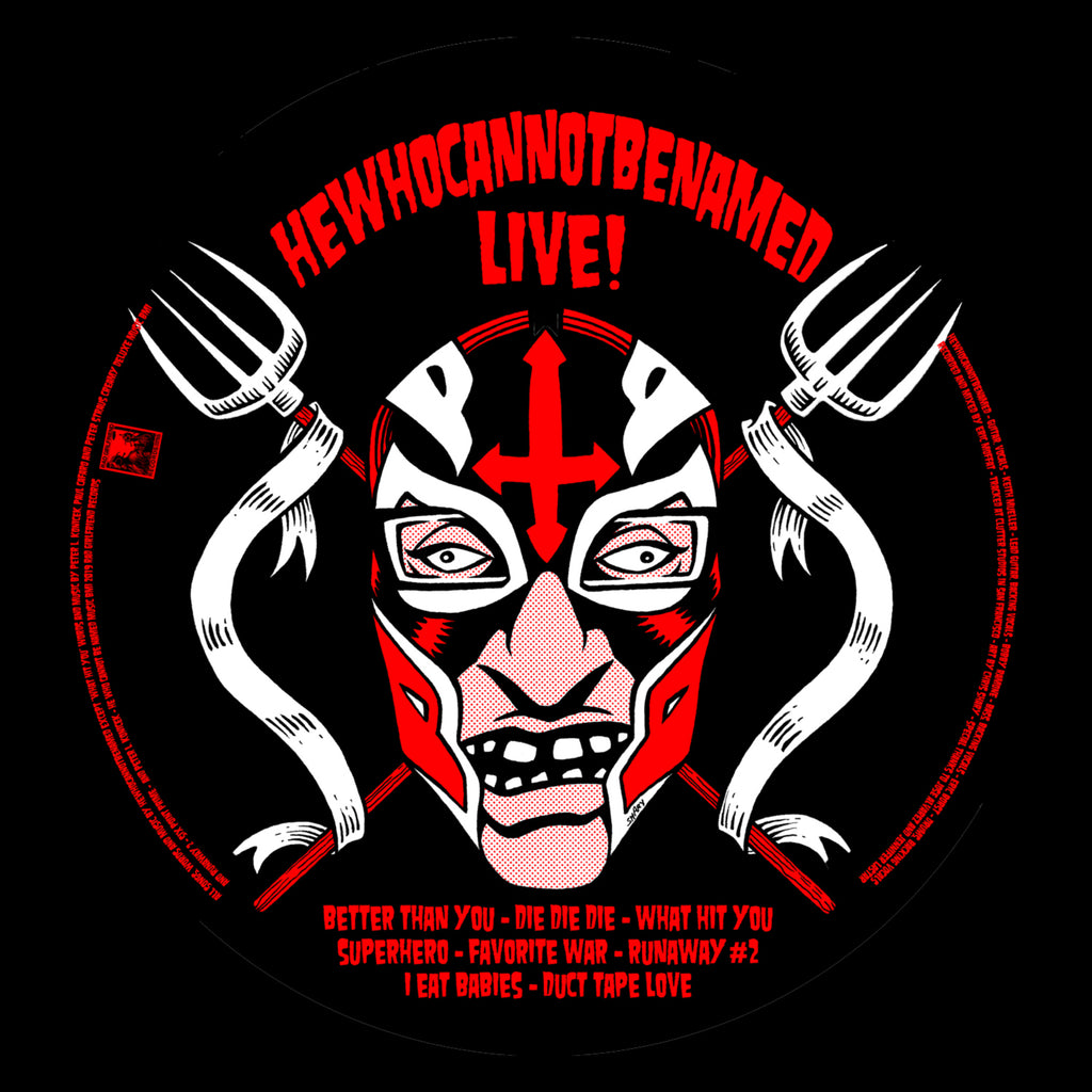 He Who Cannot Be Named, the legendary guitarist from the world famous Dwarves (and perhaps most famous for faking his own death), brings his depraved and warped live show (as well as his infamous jock strap) to this limited edition picture disc. Blistering through 6 originals spanning his solo career and 2 Dwarves songs, you couldn't get closer to He Who's Luchadore mask without putting it on. The Pink Licolns' side, recorded Live at The Emerald in St. Petersburg Florida, contains 12 songs of the lighting fast hits that made the Pink Lincolns the legendary punk band that they are revered as. You can feel the energy and charisma of frontman Chris Barrows like you were standing in the front of the stage. Beautifully mixed and mastered, you won't find a better sounding live record. And all on a limited edition, one time only Picture Disc from Rad Girlfriend Records. This will be a true collectors item!