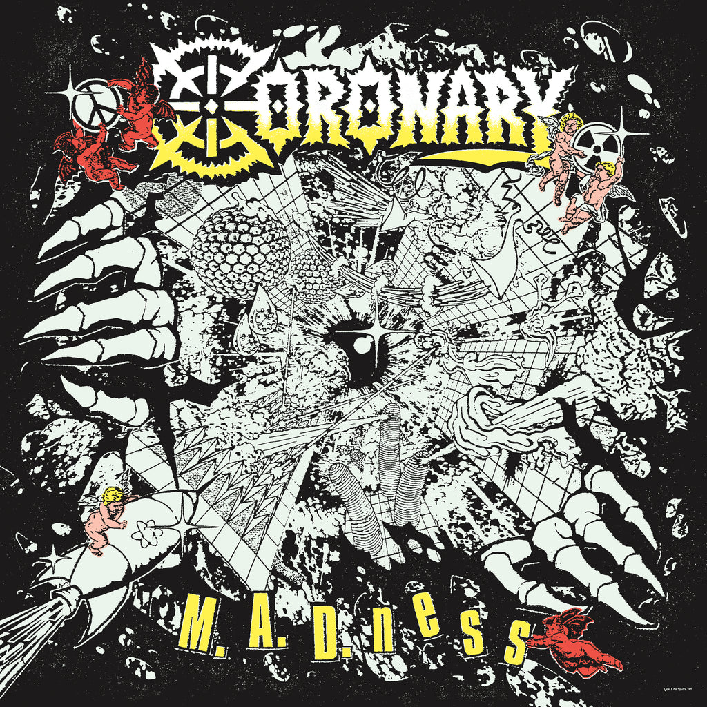 Chicago hardcore freakazoids, Coronary, returns with their explosive new LP M.A.D.ness, following the release of their 2023 debut The Future is Now. Released just 16 months after their previous record, M.A.D.ness showcases a band that is relentlessly energized and agitated. Coronary is ramping up, delivering a ferocious sound that packs the aggression and urgency of hardcore while staying true to the raw, rebellious spirit of punk.With M.A.D.ness, Coronary cements their place as one of the most exciting upcoming bands in the modern hardcore scene. The 12 tracks on the album are fast, furious, and unapologetically in-your-face, each one crammed with blistering riffs and rhythms with vocals seething with anger. The band's distinctive blend of classic hardcore energy, thrashy undertones, and punk attitude creates a sound that feels both fiercely contemporary and old school at the same time. Coronary injects their music with a spirit of fun and irreverence that recalls the DIY ethos of punk rock. It's a reminder that, even when the world feels on the edge, hardcore is more enjoyable when it also has an edge .Lyrically, M.A.D.ness explores themes of societal disillusionment, personal alienation, and the volatility of modern life, all while avoiding the trap of being overly bleak or self-serious. Coronary taps into the anxiety of the times but balances it with an infectious energy that invites listeners to mosh, shout, and let loose. The band's unapologetic attitude and raw authenticity shine through in every note, making M.A.D.ness a must-listen for anyone who's hungry for hardcore that hits just as hard as it entertains. Whether you're in it for the riffs, the rebellion, or the unrelenting energy, M.A.D.ness is a record that leaves a mark, and shows that Coronary is a band ready to take on the future with both fists raised.